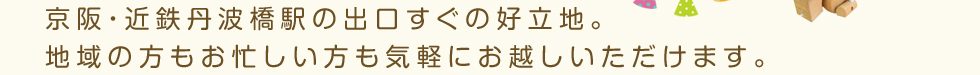 京阪丹波橋駅でてすぐ隣のビルにあります。