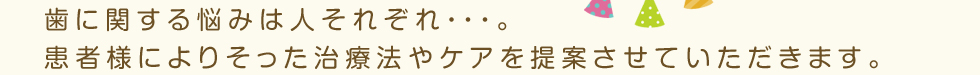 患者様のお口と体の健康をサポートできるよう、それぞれの不安や悩みを解決できるようにしっかりカウンセリングを行い、患者様ひとりひとりによりそった治療法やケアを提案させていただきます。